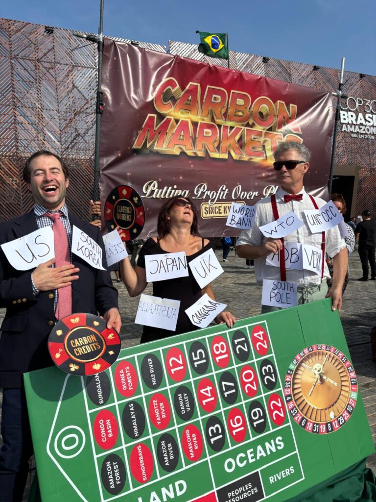 (Image from the action against Carbon Markets demonstrating the Carbon Casino taking place at COP 30)